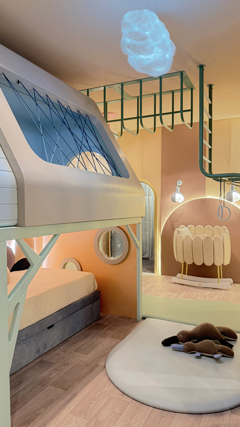At the heart of the presentation is Circu’s evolving philosophy: furniture as an emotional experience. Each piece carries a sense of narrative, from lighting that resembles floating clouds, seating that echoes the softness of a cocoon, and beds that feel like the most whimsical dreamscape. It’s not about recreating childhood; it’s about elevating it. This year, we present you, first-hand, designs like the Aurora Bed, the Tinkerbell Suspension Chair or the Remy Playground.